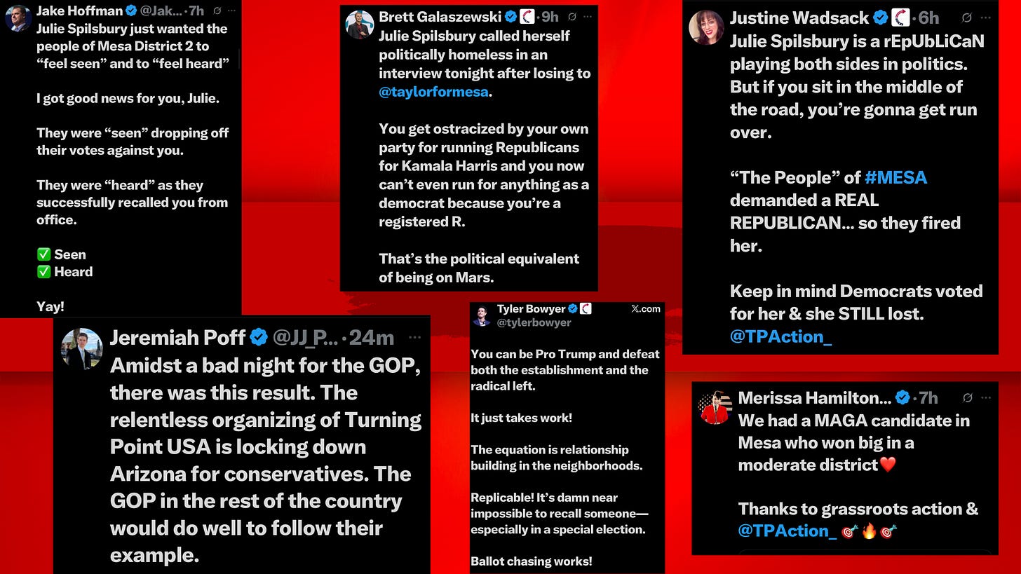 The recall, organized by Turning Point Action — the political arm of Turning Point USA — followed mounting criticism over Spilsbury’s voting record and her support for Democrats like Ruben Gallego and Kamala Harris.