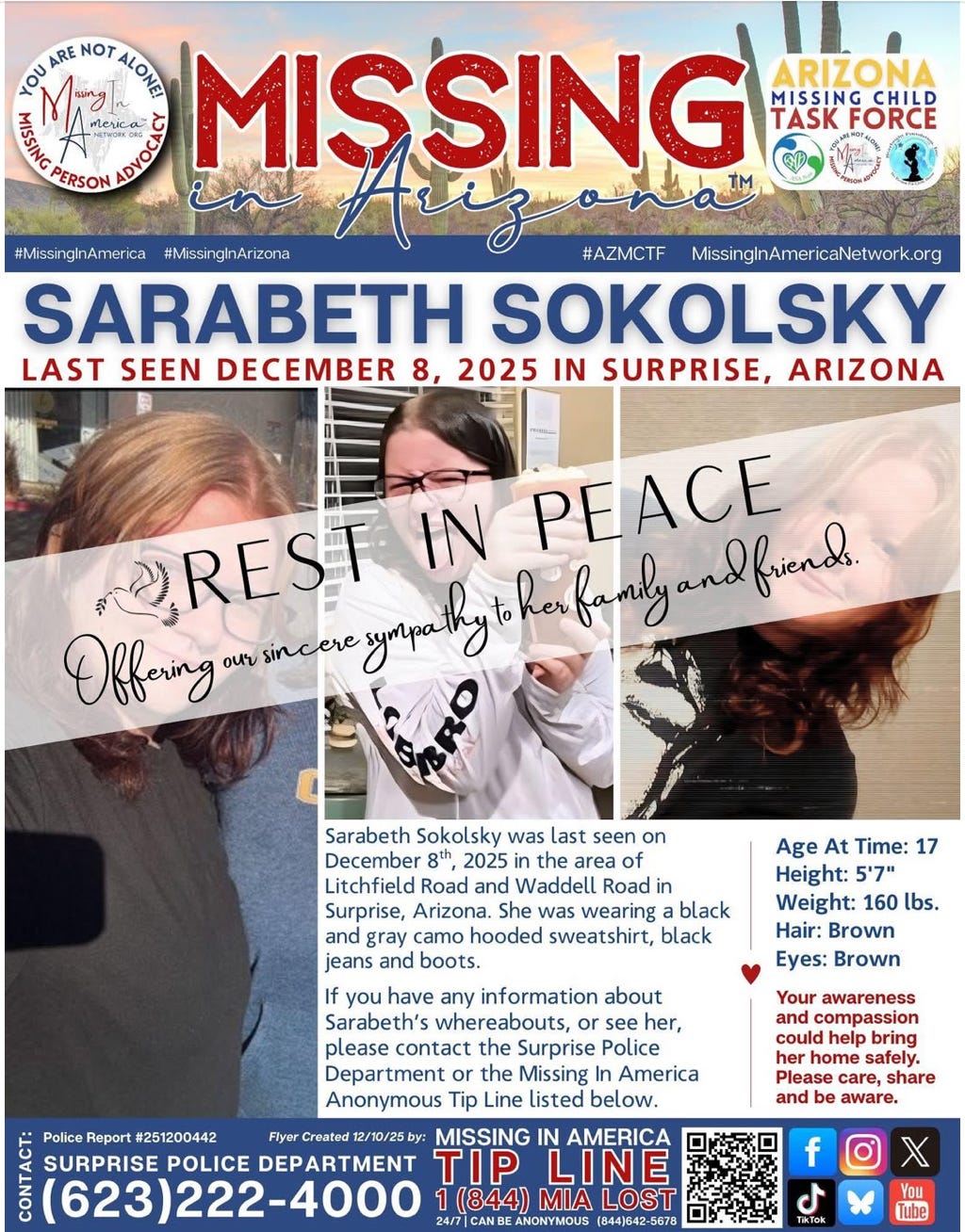 ABC15 reported that Sunshine Residential confirmed it operated the group home where Sokolsky had been living, and said the company followed required protocols when reporting her as a missing or runaway juvenile.