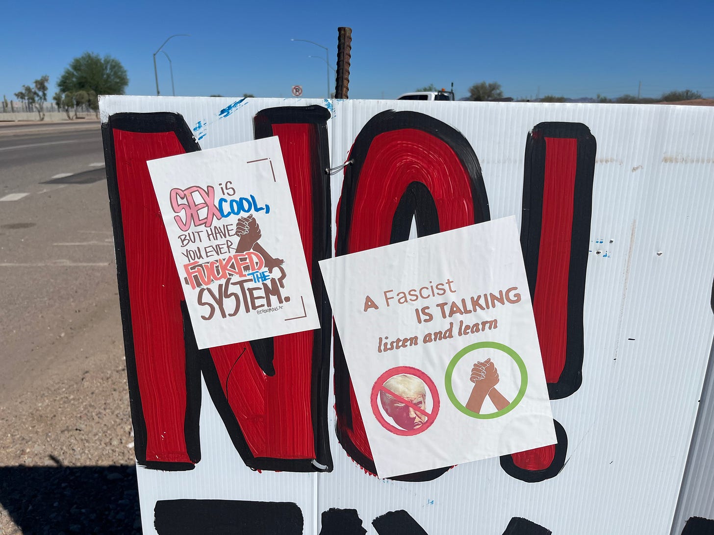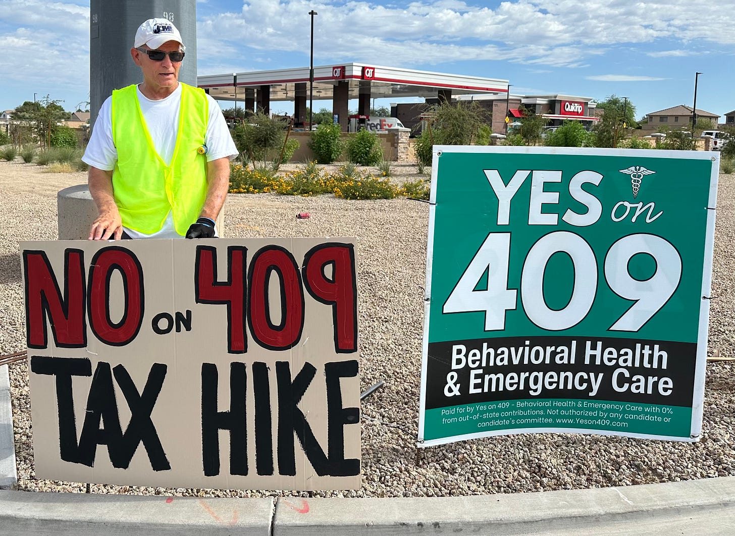 One opponent has been working hard to get the word out. Carley Morgan has hand-painted hundreds of signs (no, really!) alerting Arizonans “to vote no” on Prop 409.