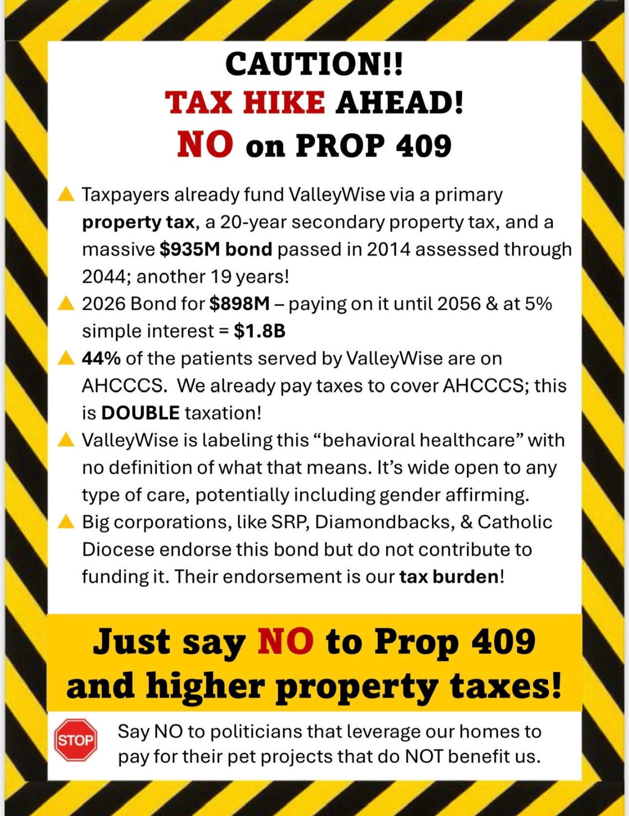 “Ask the doctors in our own district. They will tell you Valleywise is among the worst hospitals in the state. … Taxpayers are still waiting for the promised results … instead of delivering, Valleywise is already asking for billions more.”