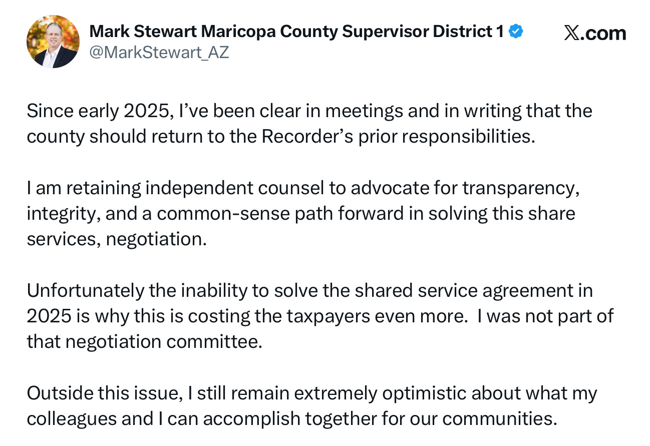 And all of this is unfolding as Maricopa County prepares for future election cycles where stability is critical.
